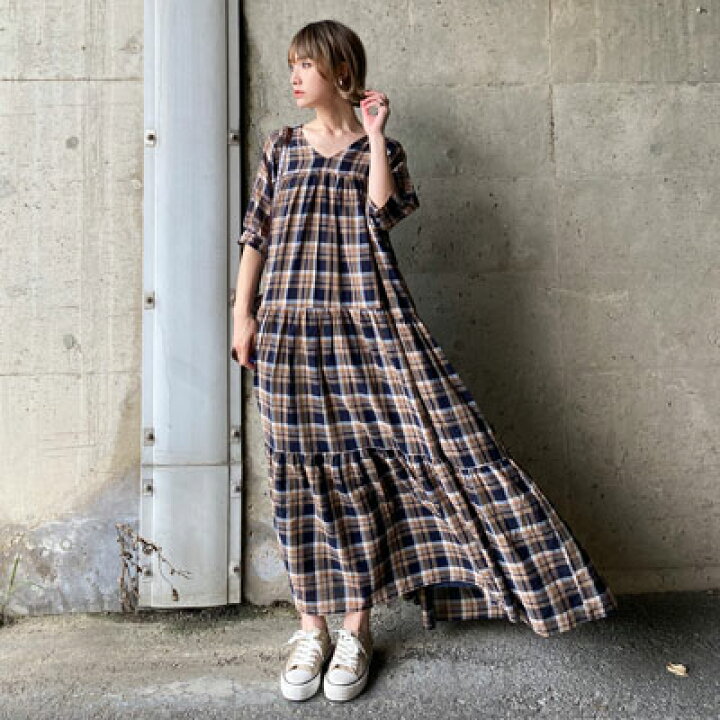 楽天市場 カントリー チェック ティアード ワンピース ふんわりエアリー 涼やかワンピース ティアード チェック シャビー リラックス カジュアル ストレスフリー レディースファッション ワンピース ロング マキシ 五分袖 高身長 トールサイズ canday